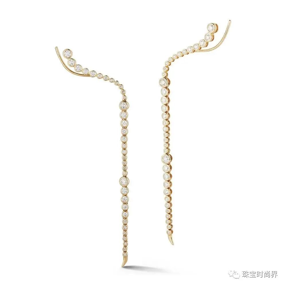 镶嵌长阶梯形切割、水滴形切割和圆形切割钻石。