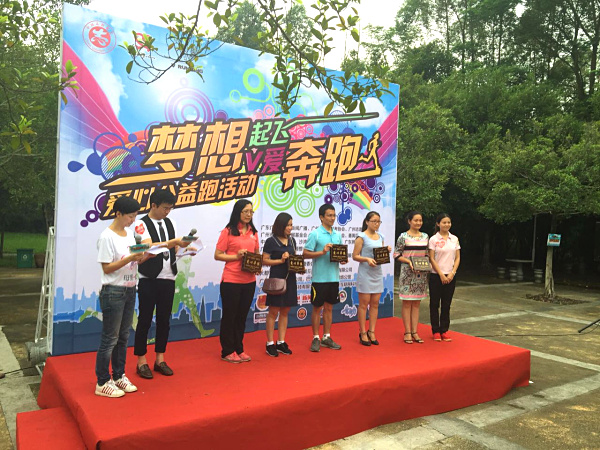 8月15日,梦想起飞V爱奔跑爱心公益跑的活动在番禺沙湾滴水岩森林公园举行。本次活动由共青团番禺区委、广州市青年志愿者协会、广州市青少年发展基金会、沙湾镇委、沙湾镇政府、广东狮子会等9个单位共同主办。